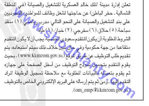 Administration King Khalid Military City for operation and maintenance in the region Northern province of Hafr Al-Batin - Saudi Arabia