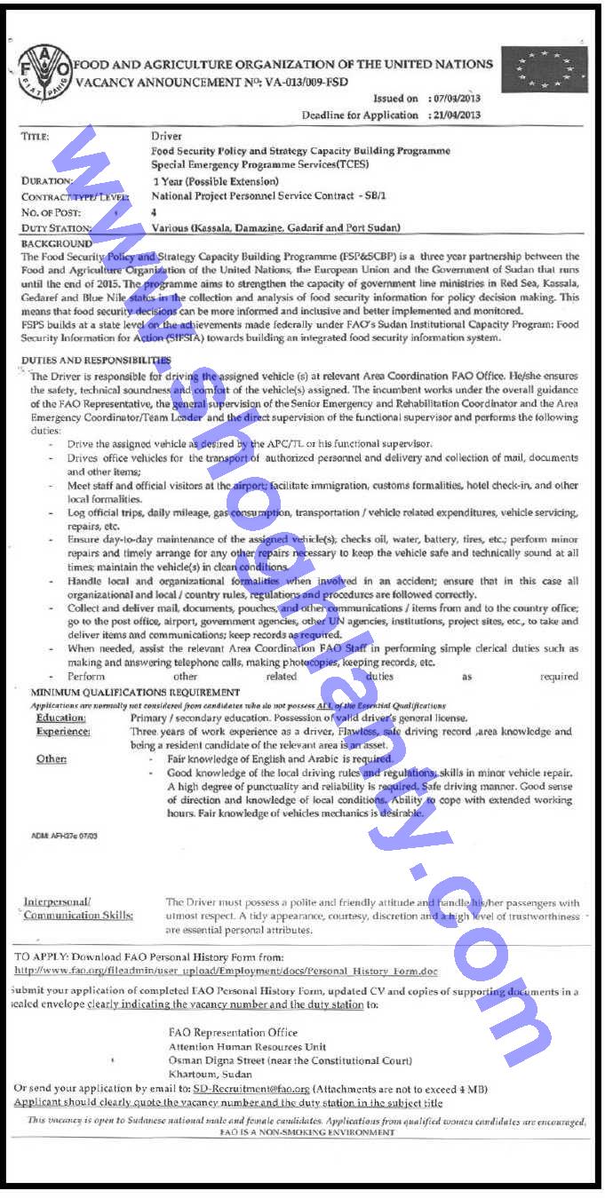Food and Agriculture Organization of the United Nations - FAO Khartoum - N / A
