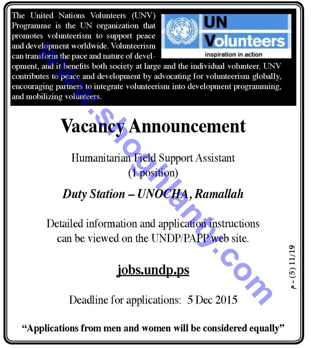 The United Nations Volunteers (UNV) program - Palestine