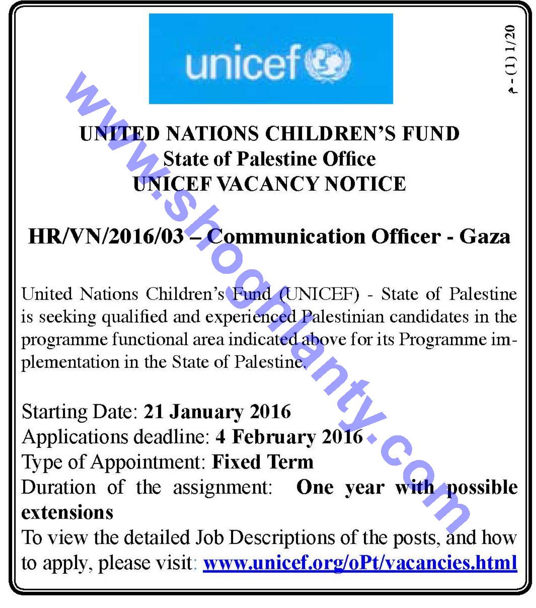 Organization of the United Nations Children's Fund - UNICEF - Palestine